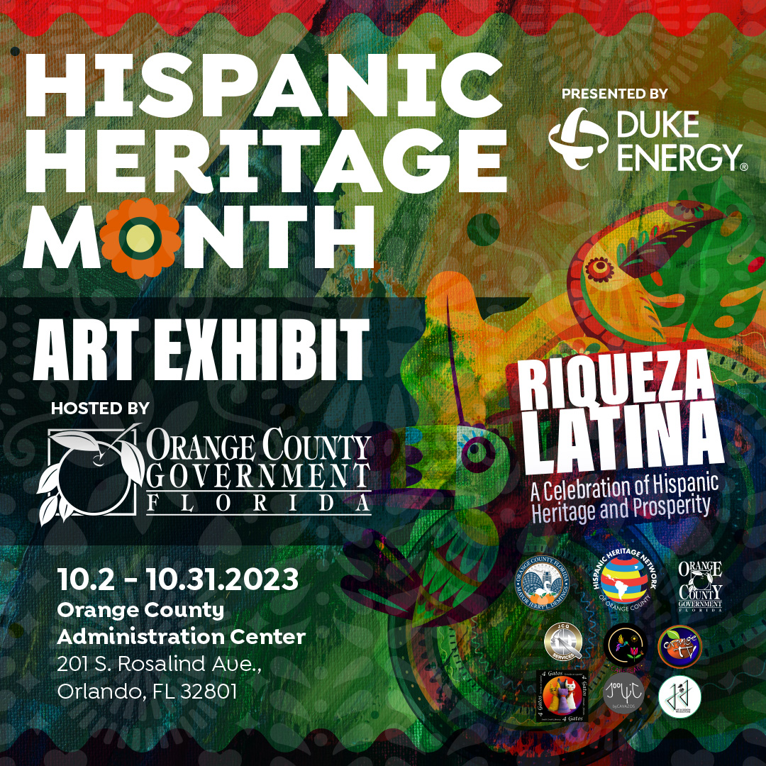 Join Orange County Government for a free art exhibit celebrating the rich culture and heritage of the Hispanic community! Riqueza Latina: A Celebration of Hispanic Heritage and Prosperity Art Exhibit will feature the work of 33 visual artists, 16 book authors, and traditional dresses from various Hispanic countries.