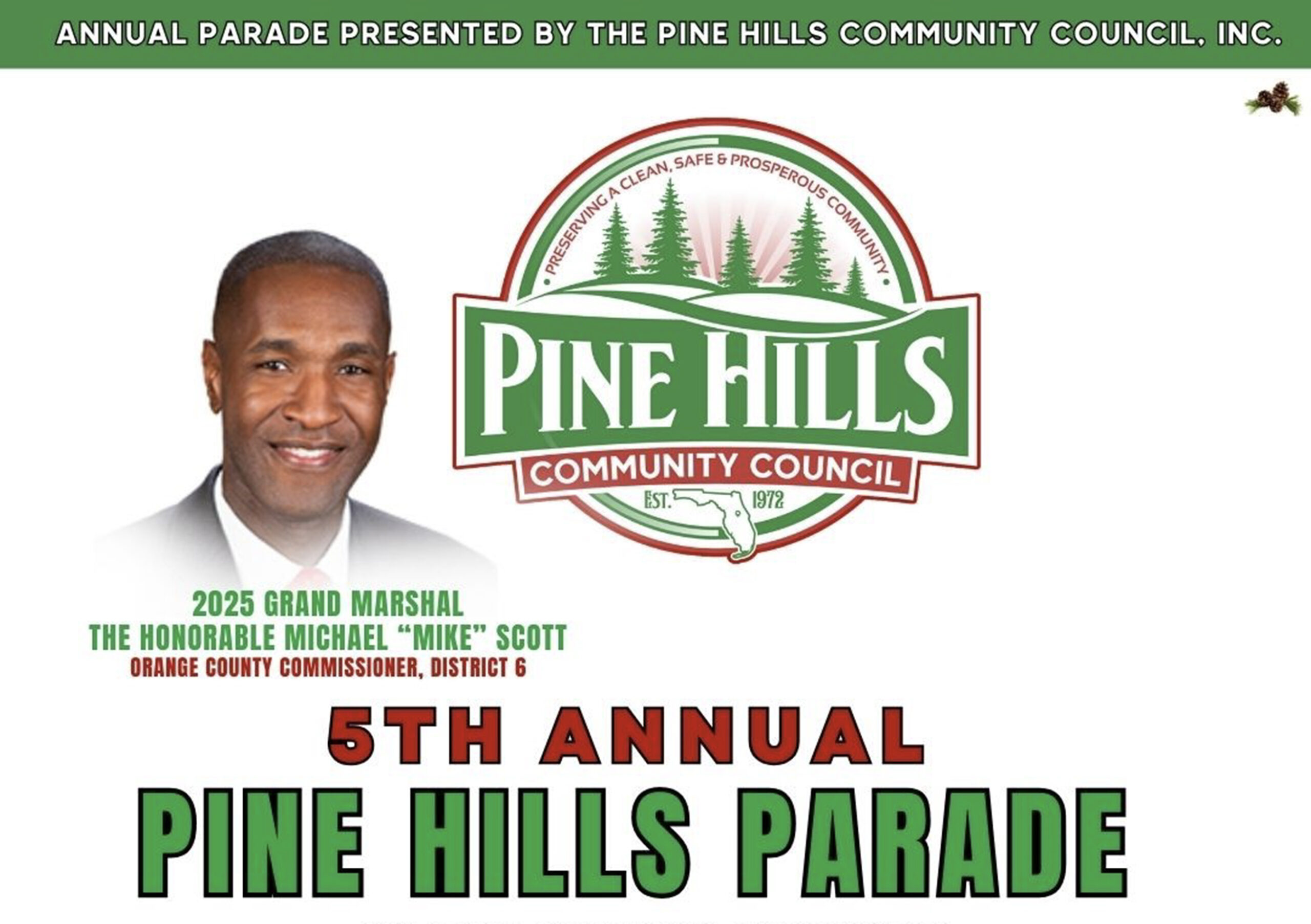 Join Grand Marshal Orange County District 6 Commissioner Michael Scott in the 5th Annual Pine Hills Parade.