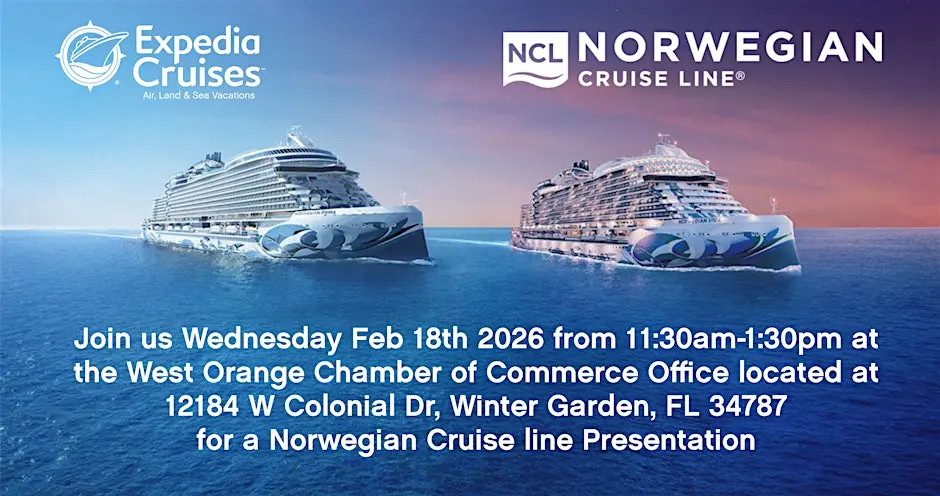 oin Expedia Cruises Orlando for a Norwegian Cruises Line Free at Sea Presentation at the West Orange Chamber!