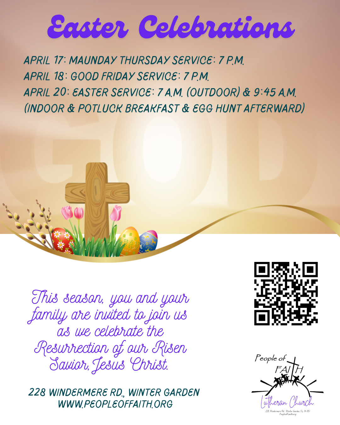 📅Sunday, April 20th: Easter Service: 9:45 AM ( Indoor & potluck breakfast & egg hunt afterward )